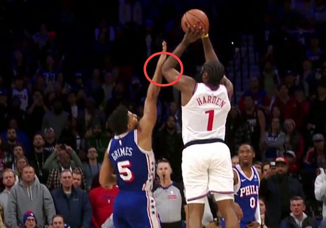 第三次漏判,也是最重要的漏判。距离比赛结束还有7秒时,快船落后两分,哈登三分出手被格雷姆斯打到手肘,但当时裁判没有吹犯规,赛后还说是正常干扰。但官方裁判报告指出,格雷姆斯确实打到哈登手臂,影响了他的跳投,该判防守犯规,这本该是一次三分罚球的机会。快船吃亏,76人获利。