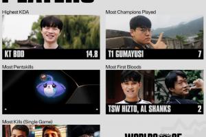 世界赛至今选手数据:Guma使用英雄最多Bdd14.8KDA最高