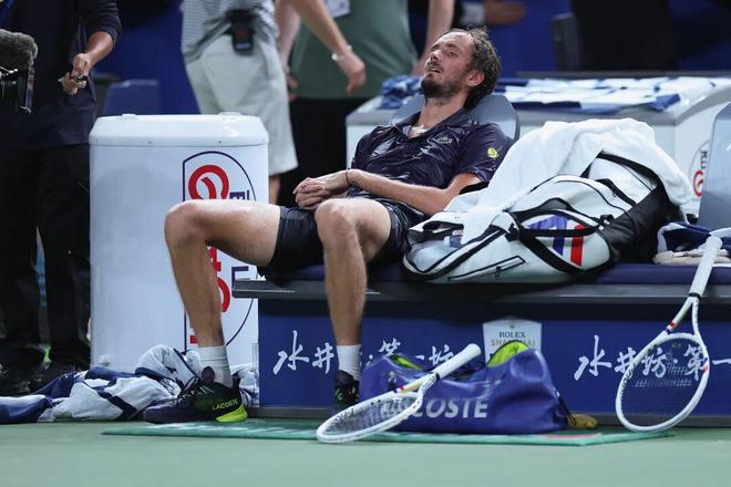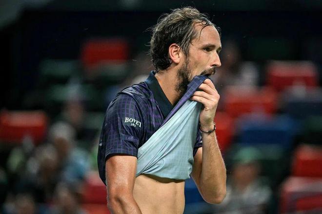 第二盘,梅德维德夫一度取得3-0的大好局势,但却突然掉线被连扳四局,让自己陷入苦苦追分的被动之中,负面情绪也随之喷涌而出。