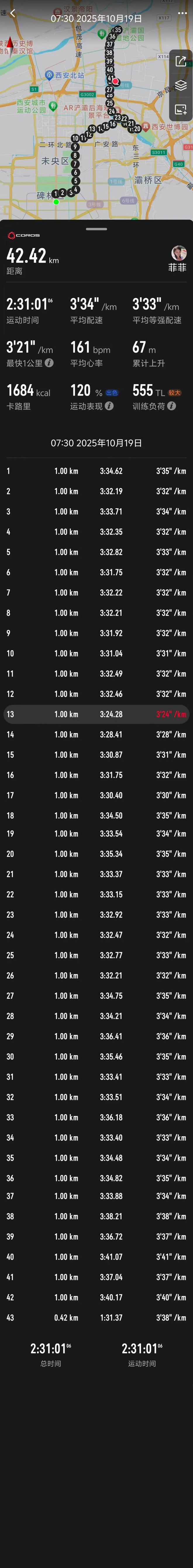 10月19日,西安马拉松在凉爽得近乎完美的天气中拉开序幕。作为国庆后首场大赛之一,西马无疑成为了很多精英跑者夏训后卯足劲儿的校验场,朱卿与黄菲的较量更是成为当天一大焦点。 比赛前程,朱卿一路领跑,黄菲则稳字当头位于其后。战局在30公里后风云突变,黄菲后来居上,将领先优势保持到最后,最终以2小时31分01秒的成绩斩获冠军并刷新PB;而在赛后朱卿的手表记录的数据中,平均步幅已经降到186,配速一度到了4分多跑崩了,最终以2小时32分22秒的成绩拿下亚军。 从领先到崩盘,从稳守到反超,在PB和跑崩之间,她们各自经历了什么? 西安的秋寒,比预想中更深一些。 朱卿和她的男友兼教练罗源在周四晚抵达西安。“西安比想象中冷多了,”这是她落地的第一感觉。这份寒冷,似乎也悄然渗入了她后续的比赛节奏中。 因为周五早上下雨,所以朱卿取消了兵马俑的行程,去健身房跑完步之后,她特意去朋友推荐的一位同为马拉松跑者的按摩师那里做了理疗放松。此前,这位按摩师还为武明瑶做了放松。 在正式拉开这场大赛前,朱卿在高温高湿的深圳完整顶过了几个月的夏训。将重要赛事放第一场是她的计划策略,“因为后续的比赛状态可能会随着身体的消耗受到影响,PB也会更难。” 所以西安,她做好了“要么PB要么跑崩”的心理预期。 赛前准备好的补给 朱卿专门买带子自己捻成绳 方便比赛中取 当天下午四点过,黄菲到达酒店。西马已经是她14天内的第三场全马,国庆期间,她去新疆参加了克拉玛依的比赛,国庆结束后当周周末,她还去跑了天门。当作找比赛节奏跑并夺冠的两场比赛,让在衡水湖因为跑崩和心态有些崩盘的黄菲慢慢找回了些自信。“衡水跑崩后(应该是其他每场比赛)我也在做复盘,会看看自己的问题到底在哪,然后下次尽量避免犯同样的错误。”明知道衡水湖高温还不降低预期,是黄菲在这场“惨烈”收尾的跑崩赛中得出的宝贵经验。 所以来到西安,她原本只把它当成调整状态的一站,想着“保三争二”,将冲成绩留在北马或者上马。但西安凉爽的天气和好跑的赛道却让她有了想要试试PB的念头。考虑到之前来过好几次西安,景点基本也都逛过,所以黄菲周五的安排是吃完中晚饭就在周边散一下步,主要以回酒店休息为主。饮食上因为之前经常要做兴奋剂检测,为保障安全,她选择在酒店吃。量上会比日常多一点。 周六清晨的陕西省体育场,聚集着许多跑者熟悉的身影,朱卿和黄菲也在其列。在赛前最后一场的训练课里,朱卿和深圳的朋友一起放松慢跑完后又加了几组200米加速跑作为适应性训练,目的是想看看身体有没有哪里不舒服;黄菲和丁璐完成了10公里的慢跑,外加几组300米的冲刺。 在陕体跑步的朱卿与黄菲 朱卿的策略明确而直接,“往228去跑,看状态尽力保二争一”;以赛代练的黄菲将西马的目标定在了230-231,“保三争二,努力站个台。” 周六上午训练结束后 朱卿、黄菲、潘素芳、李春霞在内的 十位特邀运动员参加技术会 凌晨六点的西安,气温十二度,前几日预报的雨也没有出现。 精英热身区里,朱卿、黄菲、潘素芳、李春霞等十位特邀精英穿着羽绒服,来回折返做着赛前的热身跑以及动态的热身训练。存衣完毕后,她们换上背心短裤披上雨衣,在等待身份检验的间隙不断活动着身体以保证刚热身开的肌肉保持弹性。 朱卿和黄菲一起慢跑热身 以及特邀运动员们排队侯检 七点半发令枪响,朱卿与王敏、李春霞组成了女子第一集团阵容。黄菲没有选择跟随,一个人位于其后一百多米的第二集团。 大部队出发,起跑500米左右 朱卿从出发起就处于领先位置,不错的精神头和对比赛的期待让她在起跑后的前5到10公里左右都处于比较活络和轻松的状态,配速也是按照计划中的3分30在稳速推进。而汲取到衡水失利的经验的黄菲,在比赛前12公里以“稳”字当先,也按照自己目标成绩的配速在匀速前进。 10公里之后,天空开始飘起了毛毛细雨。朱卿的腿部肌肉率先起了一丝不太对劲的反应——自己落地的弹性感消失了,“我感觉不到我肌肉的存在,腿很僵。”12.5公里和13公里处,一直稳着速度的黄菲,发现自己非但没有和第一集团拉开更长的距离,反而离她们越来越近,在状态还不错的情况下,她果断将速度提至3分24到3分22,追了上去。 自此,两人进入漫长的相持阶段。 在发现自己状态不对之后,朱卿一直在不断地调整与“找节奏”中,但这个过程并不顺利:好不容易在15到18公里期间把比赛的节奏给跑出来,结果因为进水站出来后的一些插曲又被打乱;18公里后再次找到节奏,但是没想到半马后从出水站出来,节奏又不对……朱卿形容自己就像是在跑一场“进进出出的找状态拉锯战”。尤其半程后,僵硬的双腿让她完全觉察不到肌肉的收缩,她不知道如何去处理这样的状况。朱卿回忆自己28-29公里时,配速已经在3分30到3分31了,“就是节奏很乱”。 而另外一边,在追上朱卿后,黄菲却跑得很舒服,“我感觉那个配速就是我的目标配速,两人一起跑起来的感觉还挺好。”她决定自己能跟到哪是哪。 真正的对决,在30公里后上演。 此时,女子第一集团只剩下朱卿和黄菲两人。然而,朱卿此前计划中的30公里后加速因为状态不佳未果,反而是黄菲抓住了机会实现了反超。在30公里后的一个补给站,朱卿出现了一次掉速,虽然后来她又奋力追了上去,但裂痕已然扩大。 “对