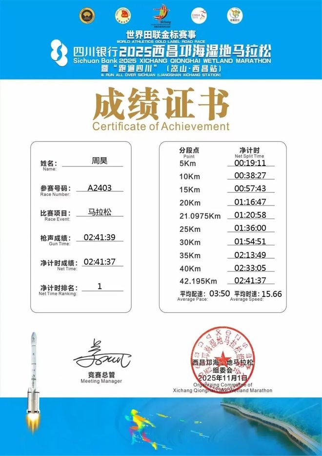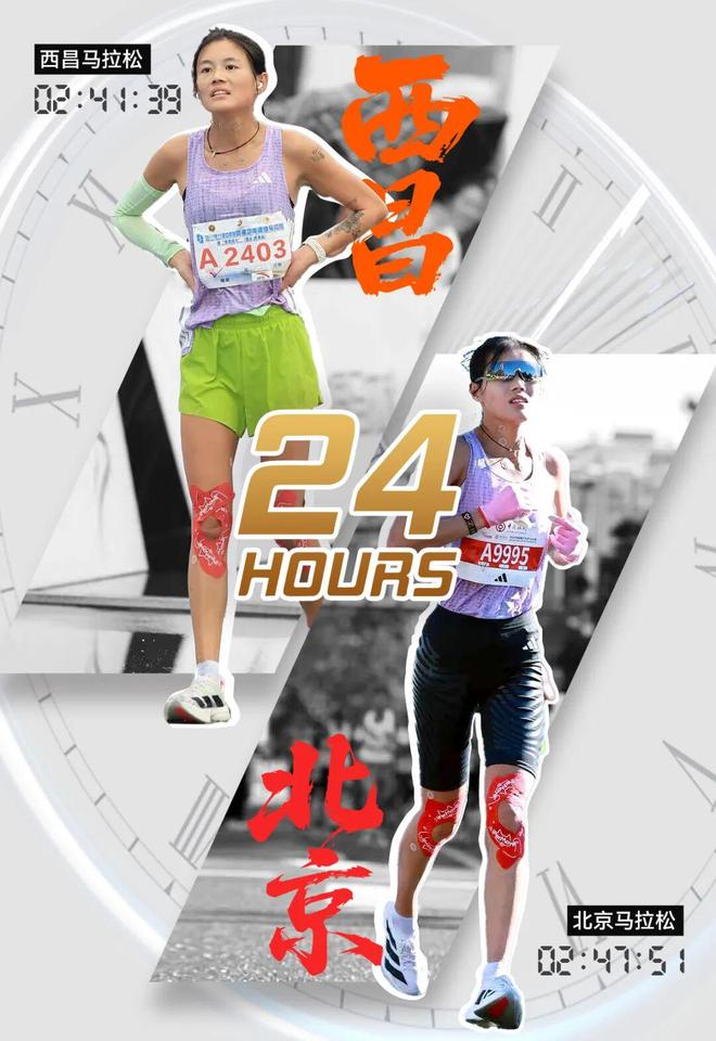 尽管西昌邛海湿地马拉松已过去近十天,但有关这场比赛的很多细节仍值得回味。“00后”选手周昊在这场突围战中,选择在25公里时开始加速,甩开了第一集团一字长龙中的张景霞、李春霞等人。而这也为她最后以2:41:39成绩拿到西昌邛海湿地马拉松奠定了突围的基础。 更疯狂的是拿到冠军喜提5万美元的奖金后,周昊没有退出隔一天鸣枪起跑的北京马拉松。而是火速转场,从赛场赶到机场,搭乘飞往北京的航班,从机场地铁转到入住的酒店已是夜幕降临。第二天,回到她之前重新达标国家健将的“福地”,以2:47:47完赛。