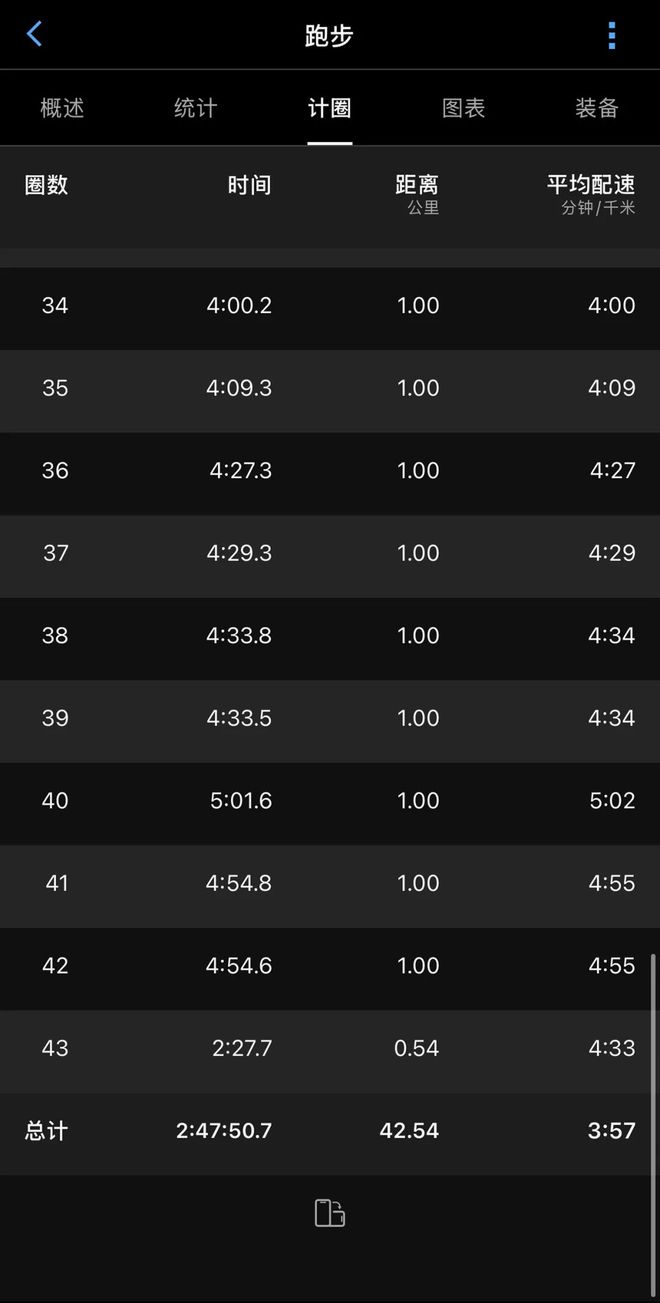 周昊的北马分段配速 35公里过后,配速疯狂往下掉 左滑查看更多 转折点还是来了——到32公里时,周昊开始掉速。从340到35公里的410,然后是35公里过后的430-450。她能感觉之前跑在自己后面的人全都超了过去。“感觉每一公里都好煎熬,这一次是目前跑得最难受的一场。因为平时再累,再怎么崩,最后也不可能累到想说都说不出话来。” 最后1.5公里,平日一起跑过不少比赛的”铁三哥“追上周昊。他还分享给对方好消息——大正217又PB了。但那时周昊说,“我能听见有人跟我说话,心里是高兴的,但我的大脑控制不了我的面部表情。不过我知道,不能停下来。因为一旦停下来,以后就再也跑不起来了。” 最后机械着往前跑的周昊以2:47:47冲过终点,但冲线过后,她甚至短时间失去了某些意识。“铁三”哥在终点处给新宇、身边的小伙伴汇报了周昊完赛情况,也一直搀着她缓了一个多小时。周昊说,这一战后俩人结下革命般的战斗友情。
