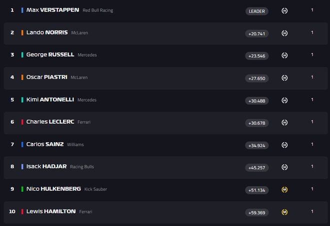 北京时间11月23日中午,2025赛季F1迎来拉斯维加斯大奖赛的正赛争夺!最终,维斯塔潘依靠着起步的超越拿到分站冠军,诺里斯获得第二,拉塞尔获得季军。至此,维斯塔潘积分来到366分,诺里斯积分来到408分,二者之间的差距被缩小到42分。 拉斯维加斯大奖赛 正赛赛况 2025赛季世界一级方程式锦标赛 拉斯维加斯大奖赛 赛道信息 拉斯维加斯大奖赛 C5-C4-C3 在昨天结束的排位赛中,诺里斯强势夺得杆位,维斯塔潘获得第二在头排发车。而塞恩斯发挥出色排在第三,和拉塞尔处在第二排发车,另一位麦克拉伦车手皮亚斯特里仅排在第五位。而因为受到天气影响,安东内利、汉密尔顿在Q1被淘汰,这显然给正赛带来了更多变数。 角田维修区起步 汉密尔顿升至第19位起步 前十位车手均使用黄胎起步,后十位车手除了斯特罗尔、奥康和比尔曼使用中性胎、安东内利使用软胎之外,其余车手都使用硬胎起步。 暖胎圈汉密尔顿起步差点出现问题 五盏红灯熄灭,比赛正式开始!诺里斯的起步极具侵略性,但是在一号弯切线发力过猛丢掉了自己的入弯线路,身后维斯塔潘抓住机会直接完成超越来到第一!而因为节奏被影响,诺里斯此后还被拉塞尔超越掉到第三名。 车阵中游和后方同样在一号弯发生两起碰撞,劳森碰上身前的皮亚斯特里后前翼受损掉至队尾,而博托莱托在同样位置拦腰撞上斯特罗尔,二者双双退赛......乱战之中,汉密尔顿笑纳大礼,从19位起跑的他瞬间升至第13位! 另一位法拉利车手勒克莱尔从第9位起步,连续超越阿隆索和比尔曼后来到第7名。 第9圈,维斯塔潘已经将拉塞尔甩出自己的DRS区独占鳌头,诺里斯的速度则越来越慢,已经被拉塞尔拉开到2.7秒左右。车阵中游,汉密尔顿陷入腹背受敌的境地,而“极其凶猛”的勒克莱尔则不断缩小与身前的皮亚斯特里的距离,终于在第13圈和第14圈分别完成了对皮亚斯特里和哈贾尔的超越。 第15圈,阿尔本在超越汉密尔顿的过程中前翼受损,赛会过了2圈才出动虚拟安全车。 第23圈,诺里斯和塞恩斯纷纷进站。前者出站后被拉塞尔超越位列第四,塞恩斯出站后从此前第三名的位置掉到皮亚斯特里身后位列第十。 第25圈,勒克莱尔进站!出站后排在第九位,身处皮亚斯特里和塞恩斯之间。 随后一圈维斯塔潘进站,虽然手握23秒以上的优势,但是进站换胎出现失误,出站后已经被拉塞尔追到了身后1.6秒左右。 第30圈,搭载硬胎的汉密尔顿进站换上中性胎,出站后排在第十名,他还能向前争取更好的名次。 第35圈,诺里斯已经追到拉塞尔身后,在14号弯前利用DRS抽头完成超越。来到第二名之后,他距离身前的维斯塔潘还有5秒不到的差距。 第37圈,阿尔本退赛。 第38圈,由于抢跑将被罚时5秒的安东内利处在第四名的位置,与身后的皮亚斯特里和勒克莱尔组成了“DRS高铁”。这一圈,皮亚斯特里想要在14号弯发起进攻,但搭载36圈硬胎的安东内利强势防守,不给对手任何机会超越自己。 随后几圈因为有罚时的存在,安东内利依旧不减速快步向前,而皮亚斯特里也放慢了追击的步伐。 最终,维斯塔潘第一个冲过终点拿到25个积分!诺里斯紧随其后获得第二,拉塞尔获得季军。 安东内利第四个冲线,但因罚时排名下滑,此后几名冲线的分别是:皮亚斯特里、勒克莱尔、塞恩斯、哈贾尔、霍肯伯格和汉密尔顿。 赛后官方页面显示安东内利处在第五名 需等待最终确认的排名 |